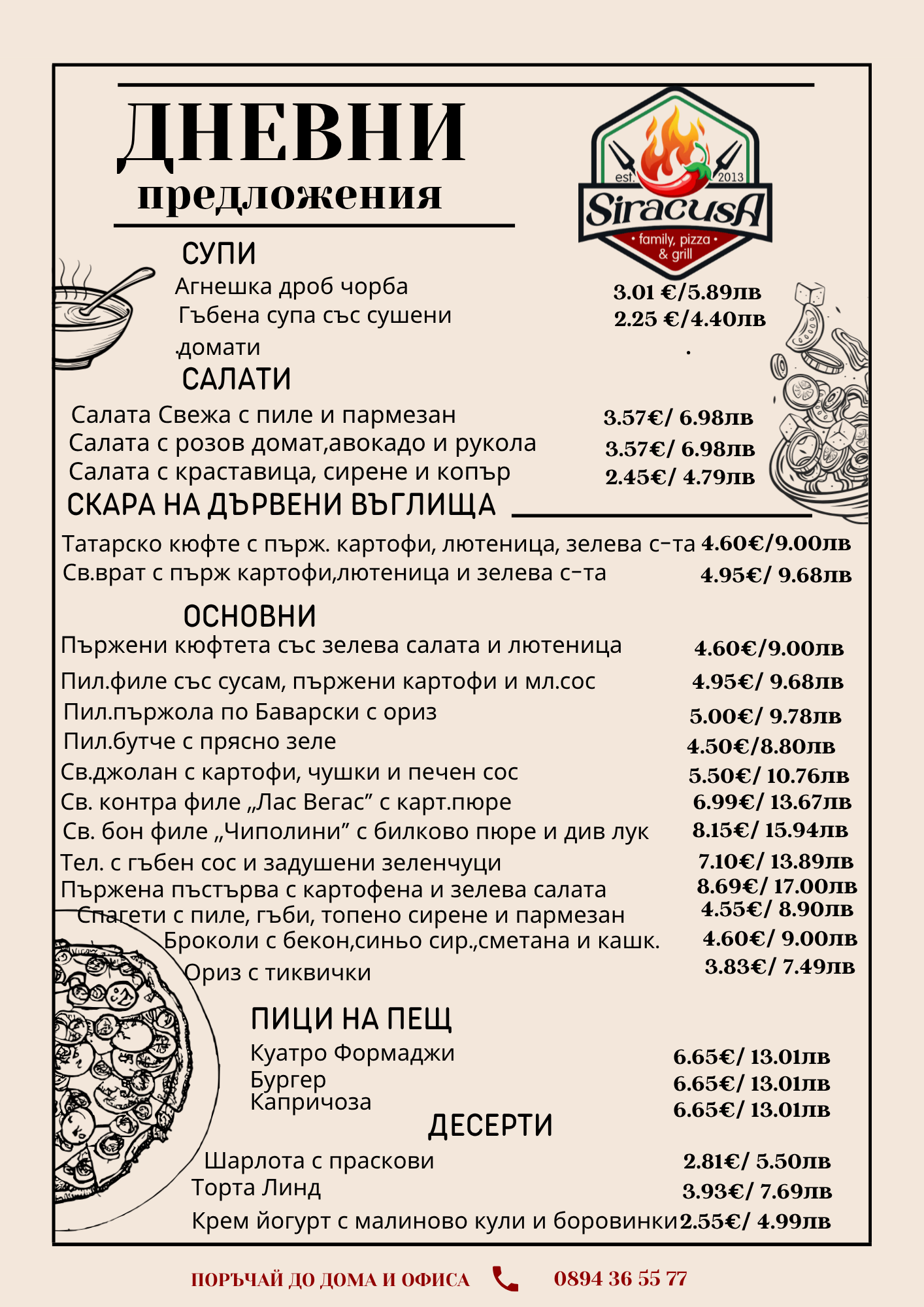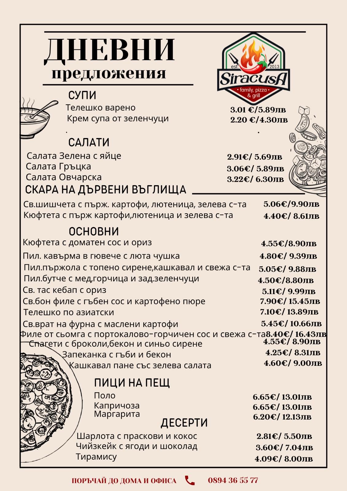 Седмично меню Pizza & Grill ”SIRACUSA”