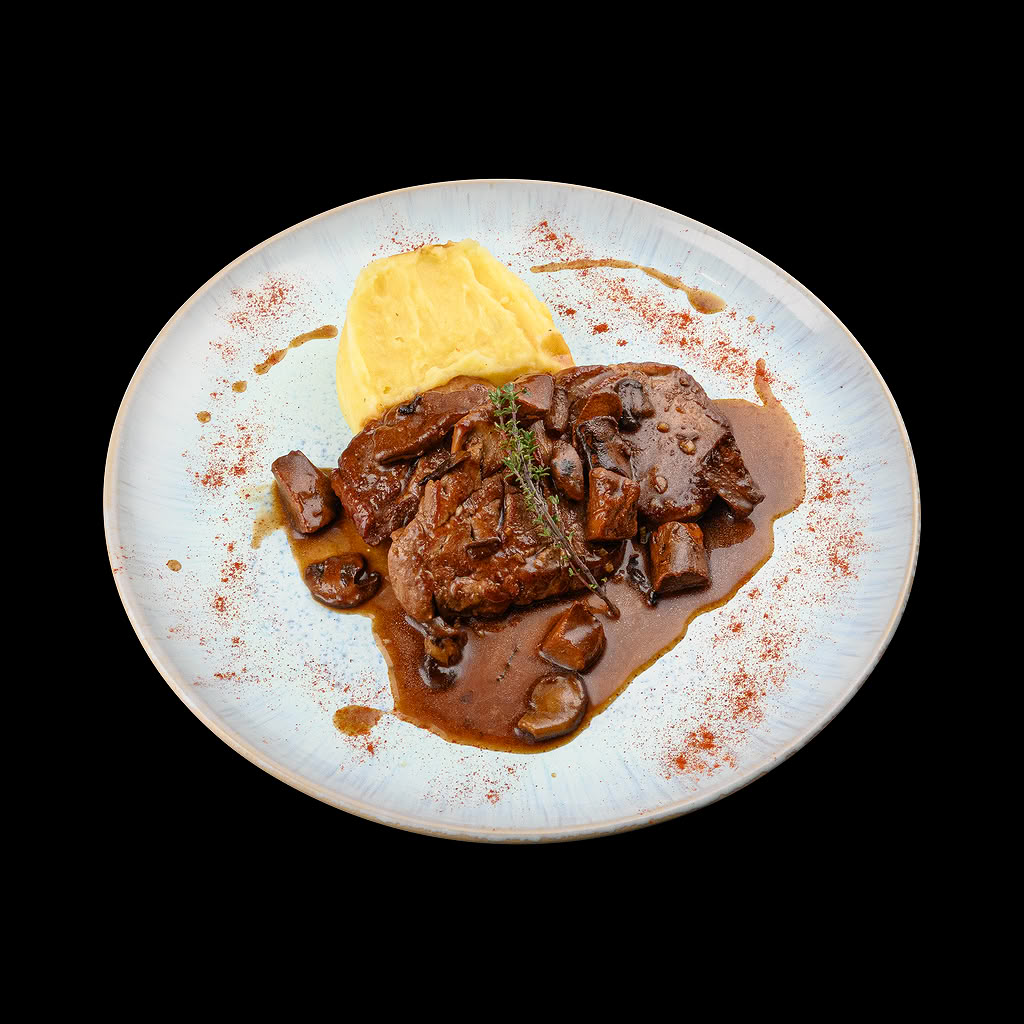 Свински медальони с горски гъби и картофено пюре