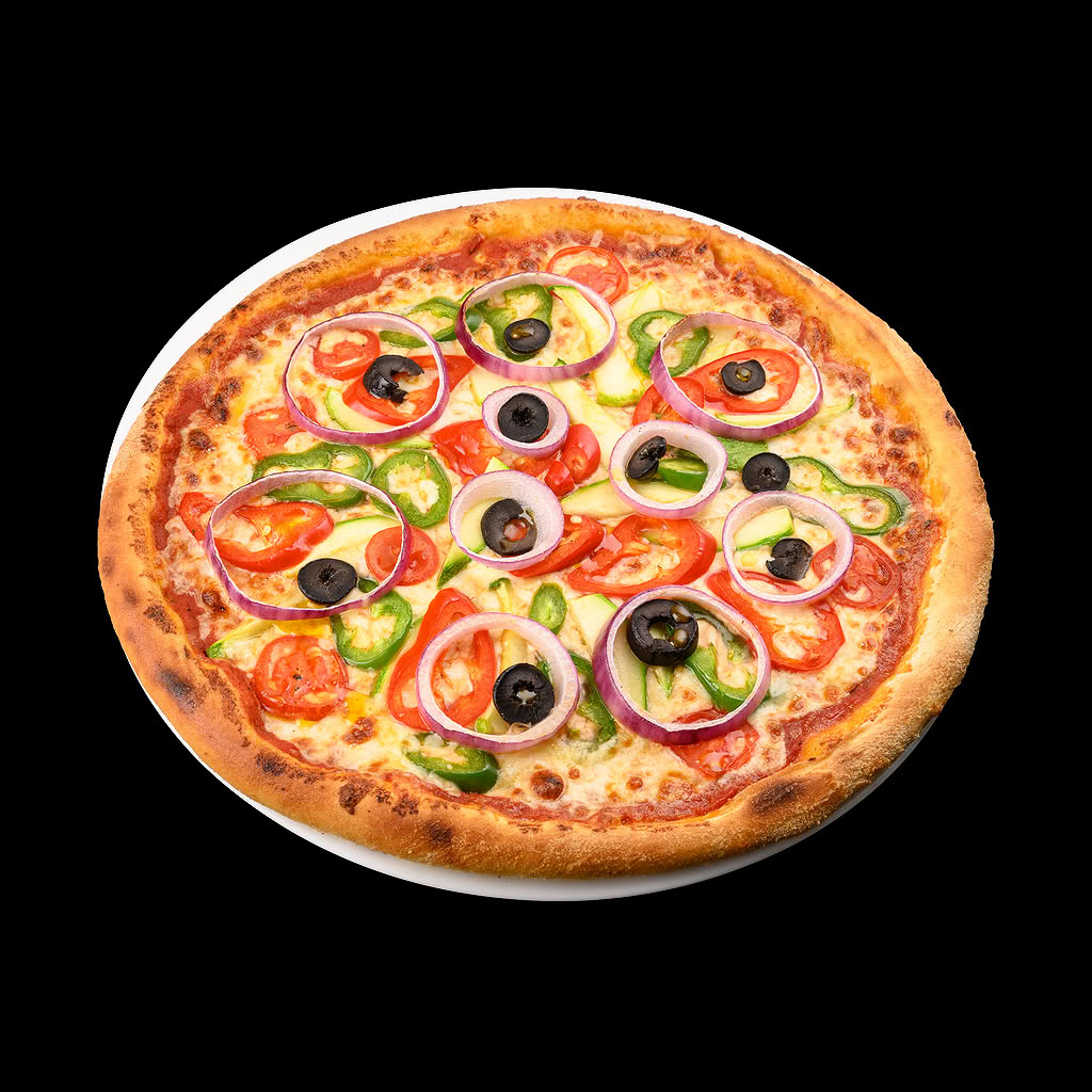 домашно заквасено тесто, домашен доматен сос, моцарела, кашкавал, зехтин, чушки, чери домати, лук, тиквички, маслини 420гр.