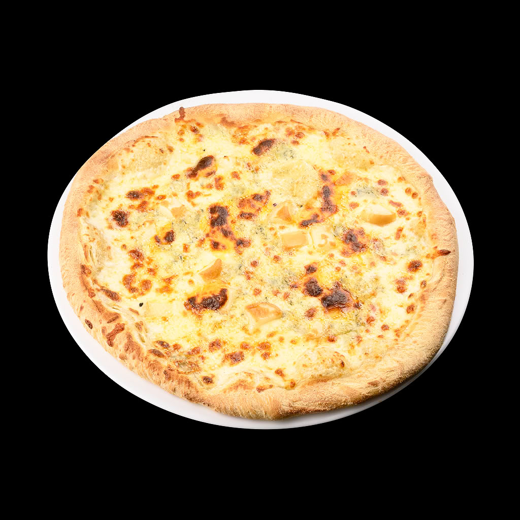 домашно заквасено тесто, сметана, моцарела, кашкавал, пилешко филе, кисела краставичка, царевица, топено сирене 420гр.