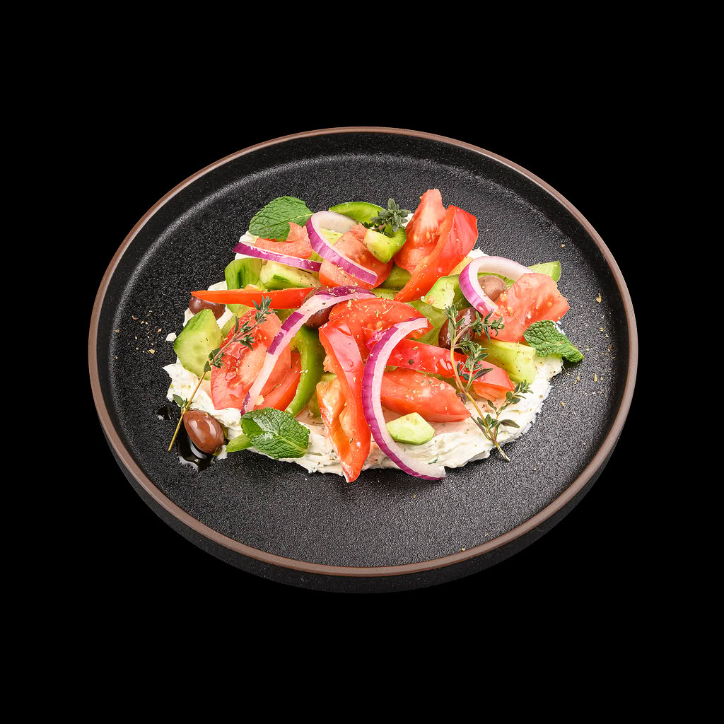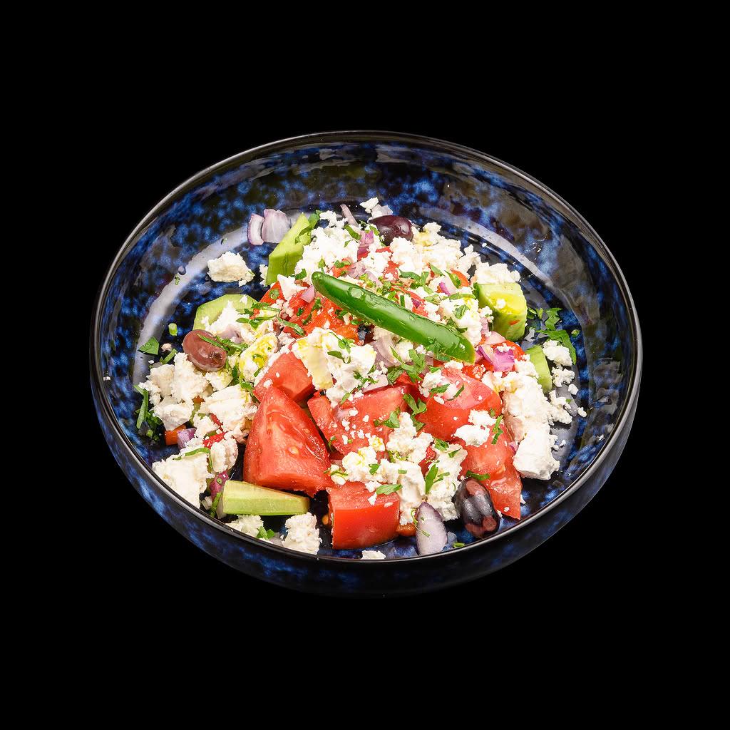 домат, краставица, чушка, зелена салата, лук червен, фета сирене, каперси, риган, дресинг/лимон, зехтин, сол/ 400 гр.